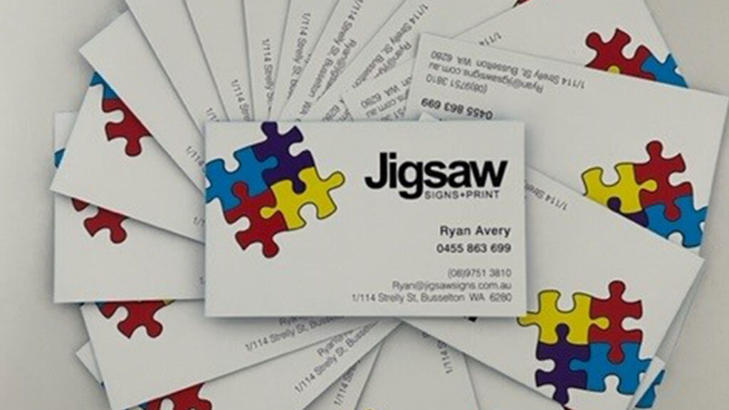 Jigsaw Signs & Print can produce full colour, standard sized cards at 90mm x 55mm on 350gsm minimum stock, 400gsm if you require a premium card. And our prices start at just $79 + GST for 250 single-sided cards.